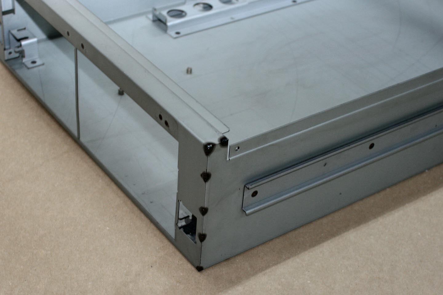 すべての子部品が、ジグなしで位置決めすることができるため素早くスポット溶接することができます。TIG溶接では、薄板ですが強度がきちんと確保できるよう工夫しています。