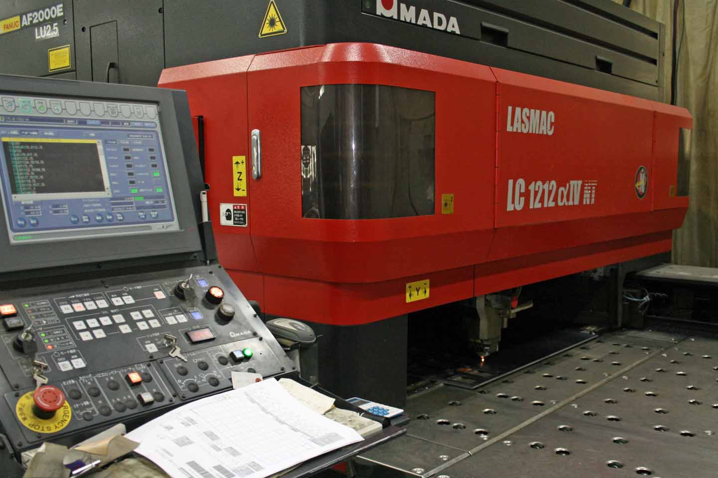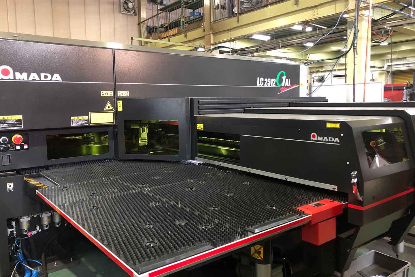 炭酸ガスレーザ発信器を搭載したレーザ加工機です。非常に柔軟な運用が可能で小回りが利く加工機です。角パイプの切断や、既製品の追加工など難しい案件にも対応しております。板厚12mmまで切ることができます。